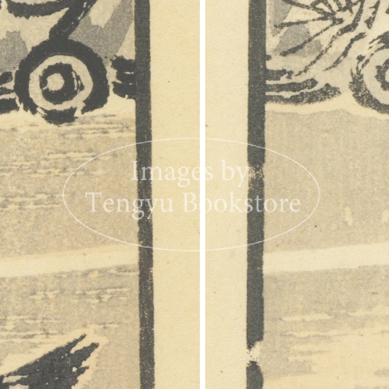 本来は2枚に分けて描かれた作品であるため、色味や図案の整合に若干の不統一があることをご了承ください。