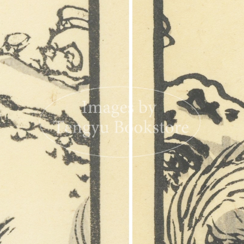本来は2枚に分けて描かれた作品であるため、色味や図案の整合に若干の不統一があることをご了承ください。