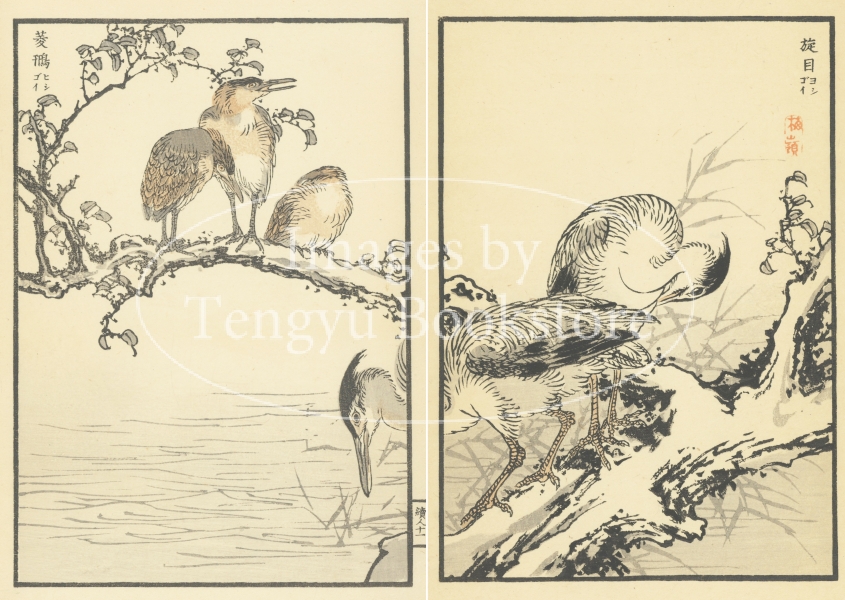 江戸時代末期から明治時代初期にかけて活躍した日本画家 幸野楳嶺(こうの ばいれい : 1844-1895)による、花鳥画の絵手本集中の1ページ。