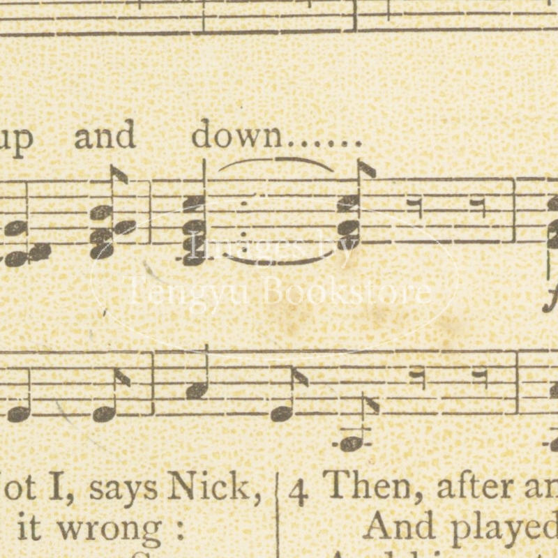 19世紀末イギリスの絵本画家ウォルター・クレイン(1845-1915)の代表作の一つ「パンの笛」(初版)の1ページ。イギリスの伝統歌謡曲の歌詞と楽譜に、ウォルター・クレインが挿絵と装飾枠を描いた美しい絵入楽譜集。