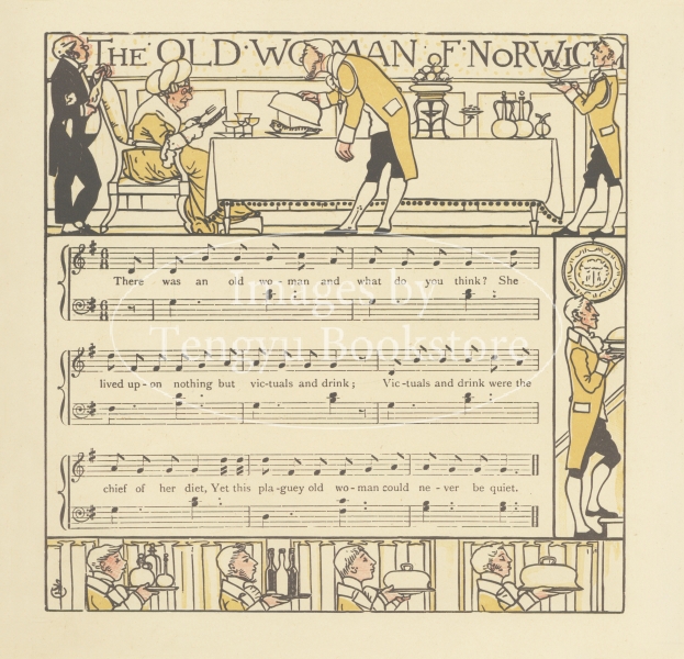 イギリスやヨーロッパ各地の伝統歌謡曲の歌詞と楽譜に、ウォルター・クレインが挿絵と装飾枠を描いた美しい絵入楽譜集。