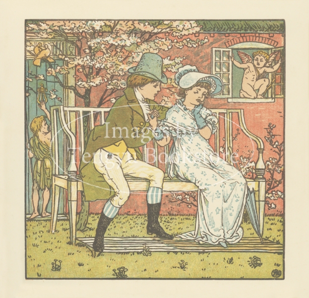 19世紀末イギリスの絵本画家ウォルター・クレイン(1845-1915)の作品「幼子の花束」の1ページ。
