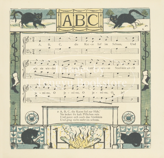 イギリスやヨーロッパ各地の伝統歌謡曲の歌詞と楽譜に、ウォルター・クレインが挿絵と装飾枠を描いた美しい絵入楽譜集。