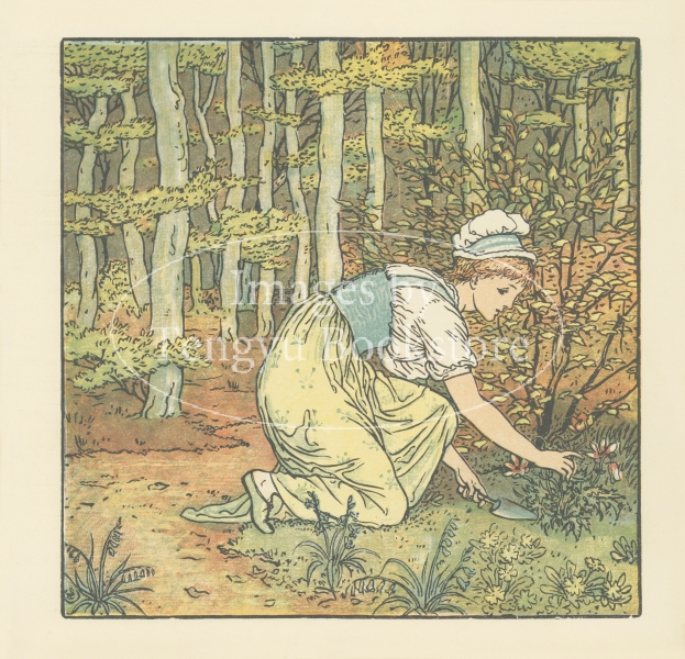 19世紀末イギリスの絵本画家ウォルター・クレイン(1845-1915)の作品「幼子の花束」の1ページ。