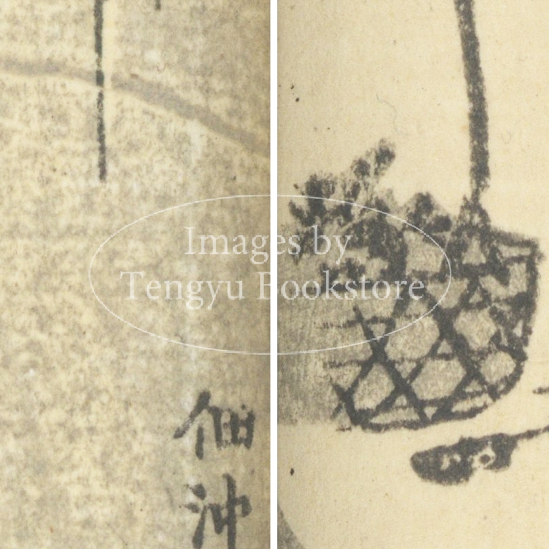 本来は2枚に分けて描かれた作品であるため、色味や図案の整合に若干の不統一があることをご了承ください。