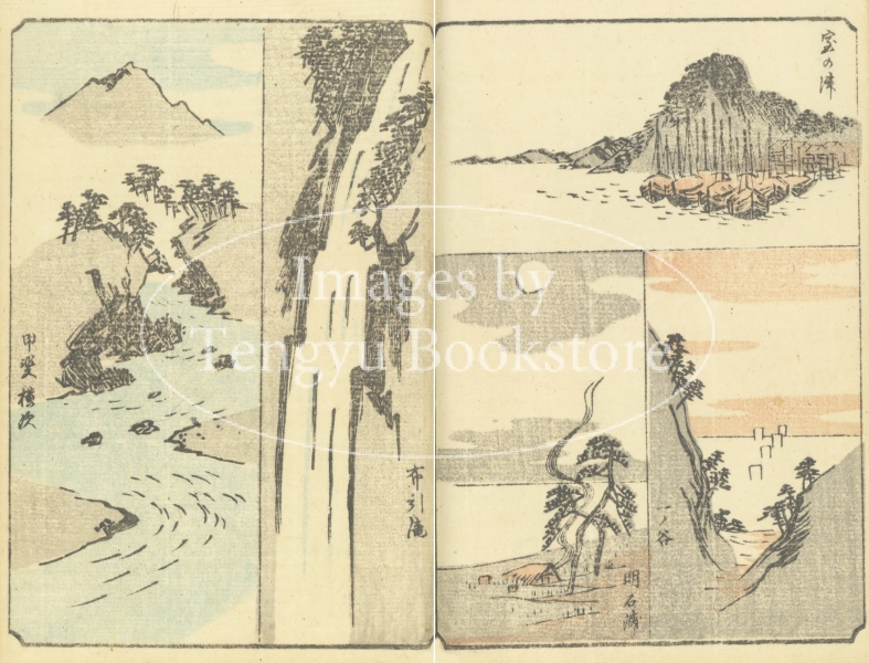 江戸時代後期の人気浮世絵師 歌川広重(1797-1858)による絵手本集「草筆画譜」より。「東海道五十三次」等の風景画シリーズで知られる広重が、風景・動植物・人物など多種多様な題材をシンプルな形で描いたイラスト集です。