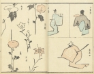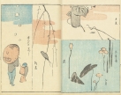 江戸時代後期の人気浮世絵師 歌川広重(1797-1858)による絵手本集「草筆画譜」より。「東海道五十三次」等の風景画シリーズで知られる広重が、風景・動植物・人物など多種多様な題材をシンプルな形で描いたイラスト集です。