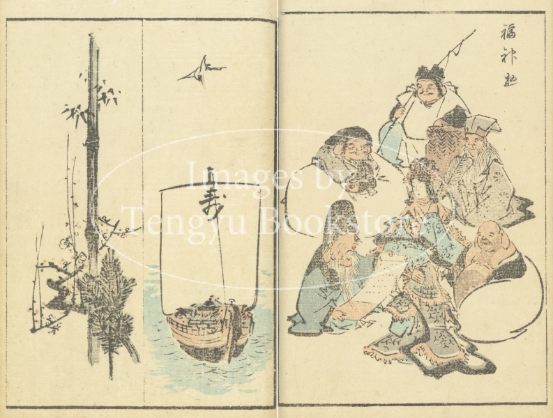 本来は2枚に分けて描かれた作品であるため、色味や図案の整合に若干の不統一があることをご了承ください。