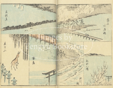 江戸時代後期の人気浮世絵師 歌川広重(1797-1858)による絵手本集「草筆画譜」より。「東海道五十三次」等の風景画シリーズで知られる広重が、風景・動植物・人物など多種多様な題材をシンプルな形で描いたイラスト集です。