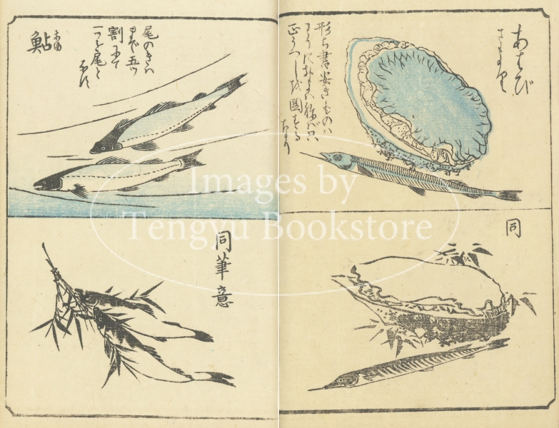 江戸時代後期の人気浮世絵師 歌川広重(1797-1858)による絵手本集「草筆画譜」より。「東海道五十三次」等の風景画シリーズで知られる広重が、風景・動植物・人物など多種多様な題材をシンプルな形で描いたイラスト集です。