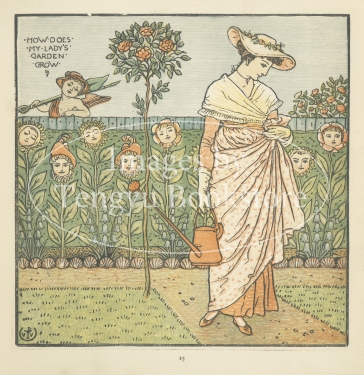 19世紀末イギリスの絵本画家ウォルター・クレイン(1845-1915)の作品「幼子のオペラ」の1ページ。