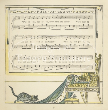 19世紀末イギリスの絵本画家ウォルター・クレイン(1845-1915)の作品「幼子のオペラ」の1ページ。
