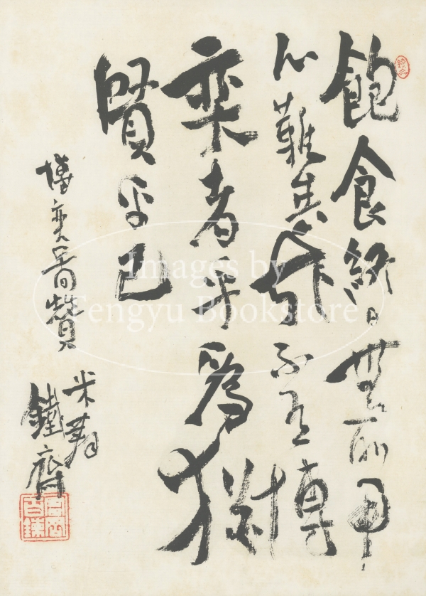 明治、大正時代を代表する文人画家 富岡鉄斎(1837-1924)の画帖「貽咲墨戯」(いしょうぼくぎ)の一図。本作は大正12年に88歳を迎えた鉄斎が米寿記念に描いた画帖を、配布用の記念品として精巧に複製したもの。