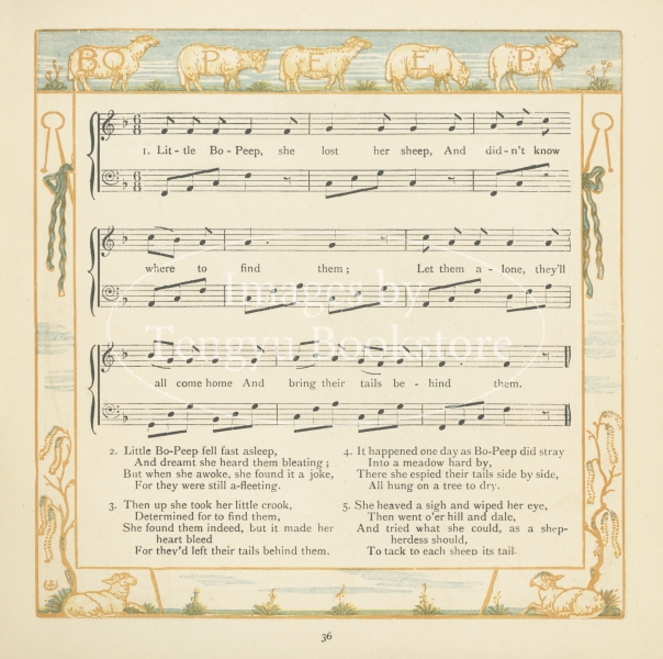 イギリスやヨーロッパ各地の伝統歌謡曲の歌詞と楽譜に、ウォルター・クレインが挿絵と装飾枠を描いた美しい絵入楽譜集。