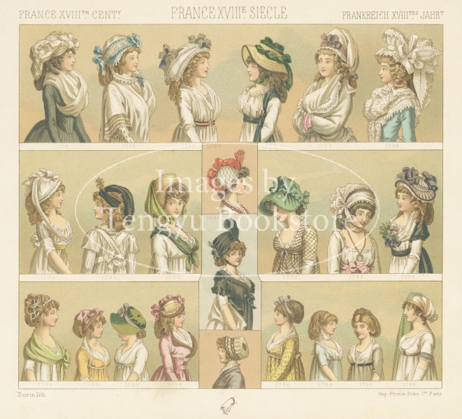 多色刷石版によってカラー印刷された、世界の歴史的衣装や民族衣装の図は、資料的な価値はもちろん、美術的にも評価の高い貴重なイラストです。