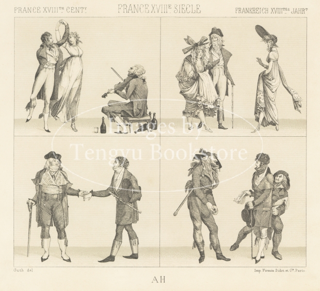 多色刷石版によってカラー印刷された、世界の歴史的衣装や民族衣装の図は、資料的な価値はもちろん、美術的にも評価の高い貴重なイラストです。