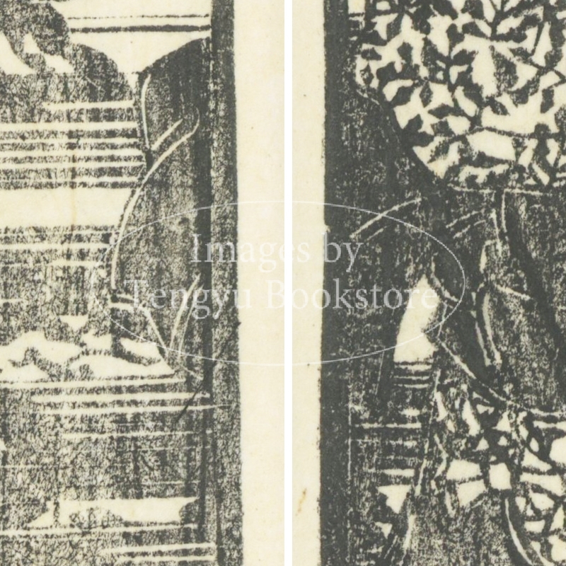 本来は2枚に分けて描かれた作品であるため、色味や図案の整合に若干の不統一があることをご了承ください。