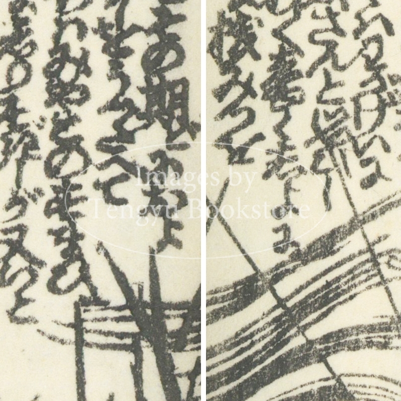 本来は2枚に分けて描かれた作品であるため、色味や図案の整合に若干の不統一があることをご了承ください。