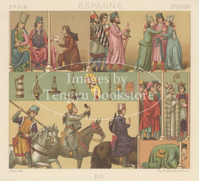 多色刷石版によってカラー印刷された、世界の歴史的衣装や民族衣装の図は、資料的な価値はもちろん、美術的にも評価の高い貴重なイラストです。