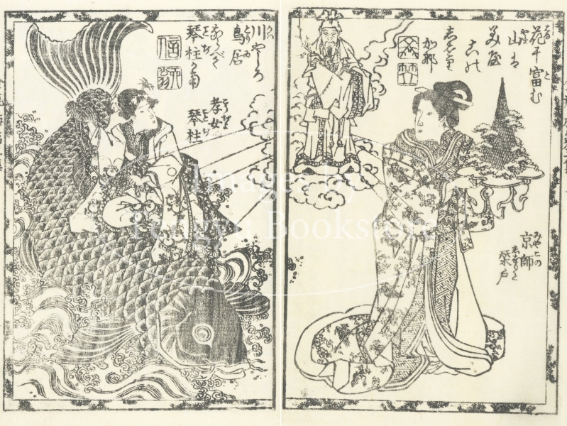 中国四大奇書の一つ「金瓶梅」を翻案した絵入草双紙である本作の挿絵は、浮世絵師としても知られる歌川国安(1794-1832)と歌川国貞(三代目歌川豊国/1786-1865)によるもの。