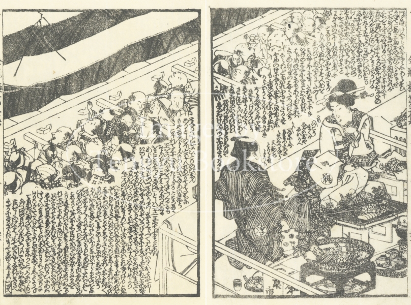 中国四大奇書の一つ「金瓶梅」を翻案した絵入草双紙である本作の挿絵は、浮世絵師としても知られる歌川国安(1794-1832)と歌川国貞(三代目歌川豊国/1786-1865)によるもの。