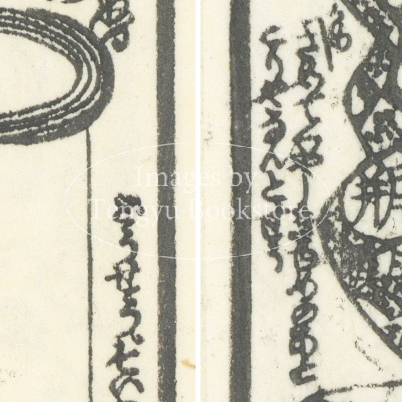 本来は2枚に分けて描かれた作品であるため、色味や図案の整合に若干の不統一があることをご了承ください。