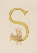 19世紀イギリスを代表する絵本作家ケイト・グリーナウェイ(1846-1901)の小型絵本「アルファベット」の表紙。アルファベットの一文字ずつと子供たちが戯れる様子を描いた、愛らしいABC絵本。