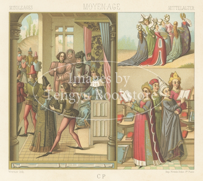 19世紀フランスの画家、服飾研究家アルベール・シャルル・オーギュスト・ラシネ(1825-1893)の代表作「服飾史/Le Costume Historique」。