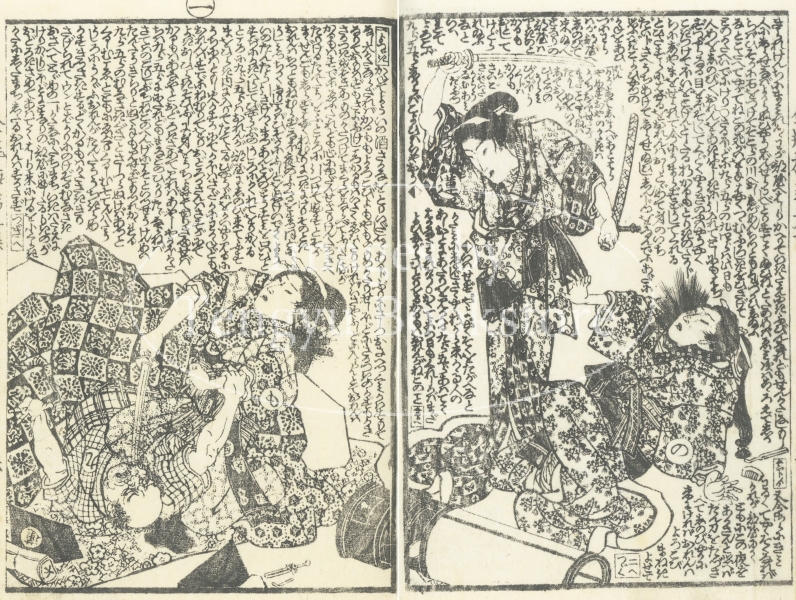 江戸時代後期の作家 曲亭馬琴(1767-1848)の長編小説「新編金瓶梅」の挿絵。