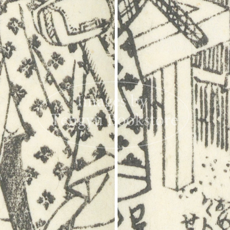 本来は2枚に分けて描かれた作品であるため、色味や図案の整合に若干の不統一があることをご了承ください。