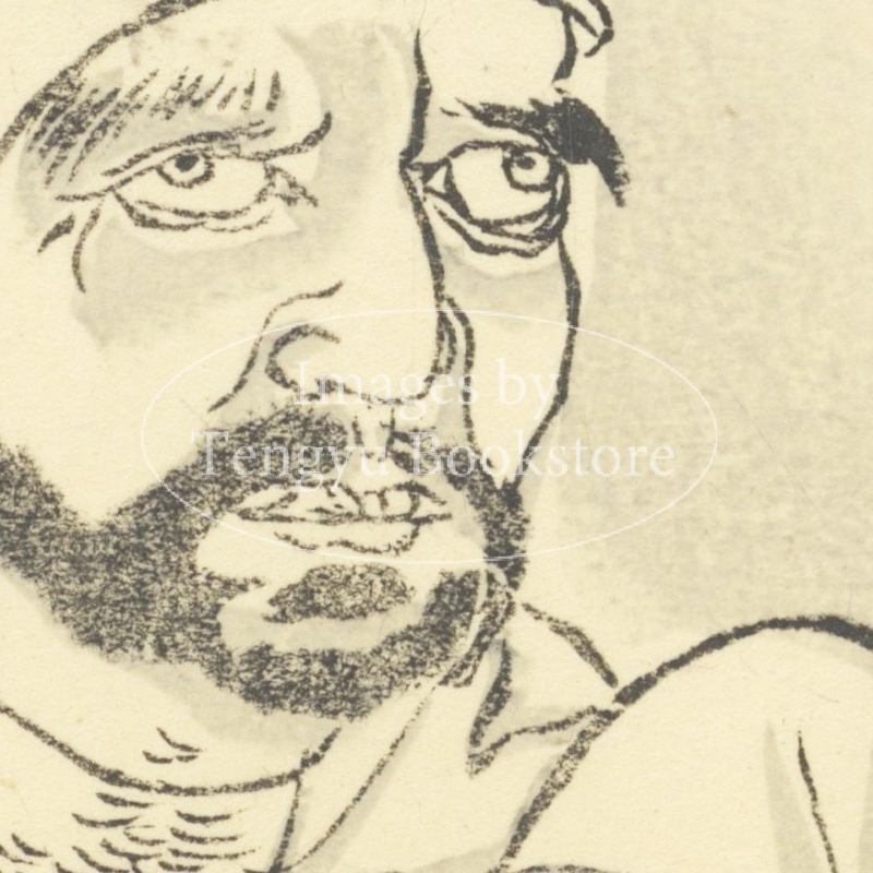 日本画史上最大の画派 狩野派を代表する江戸初期の絵師 狩野探幽(1602-1674)が自身の研鑽のために描いていた古画の模写図(縮図)を木版画に起こした、明治期刊行の探幽縮図集中の一図。