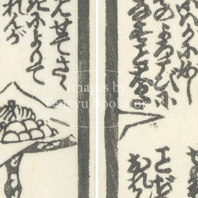 本来は2枚に分けて描かれた作品であるため、色味や図案の整合に若干の不統一があることをご了承ください。