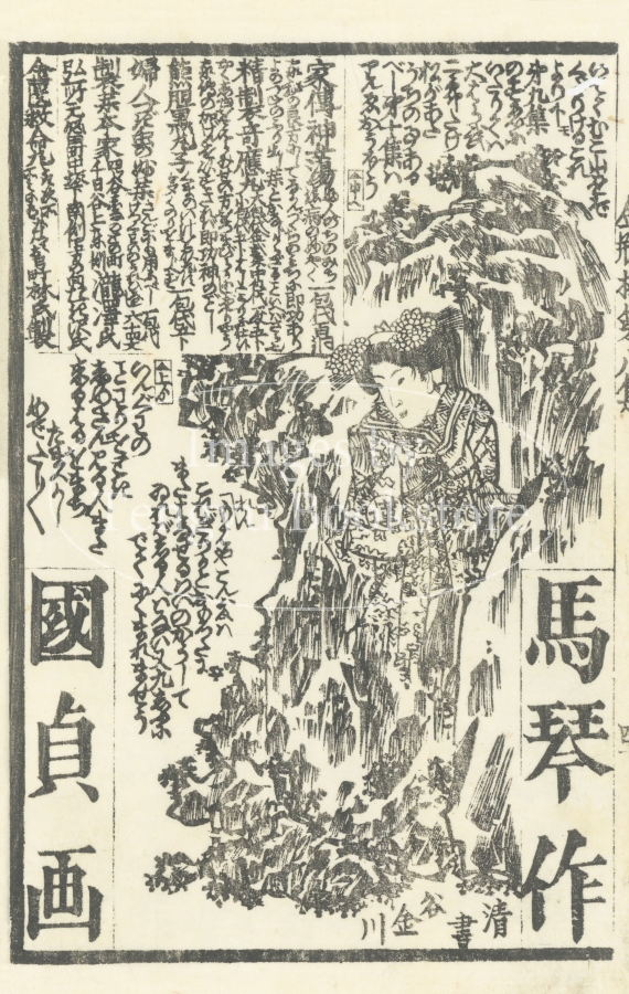 中国四大奇書の一つ「金瓶梅」を翻案した絵入草双紙である本作の挿絵は、浮世絵師としても知られる歌川国安(1794-1832)と歌川国貞(三代目歌川豊国/1786-1865)によるもの。