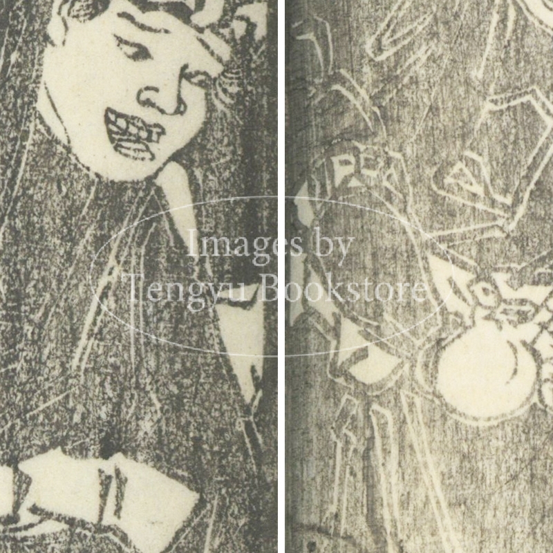 中国四大奇書の一つ「金瓶梅」を翻案した絵入草双紙である本作の挿絵は、浮世絵師としても知られる歌川国安(1794-1832)と歌川国貞(三代目歌川豊国/1786-1865)によるもの。