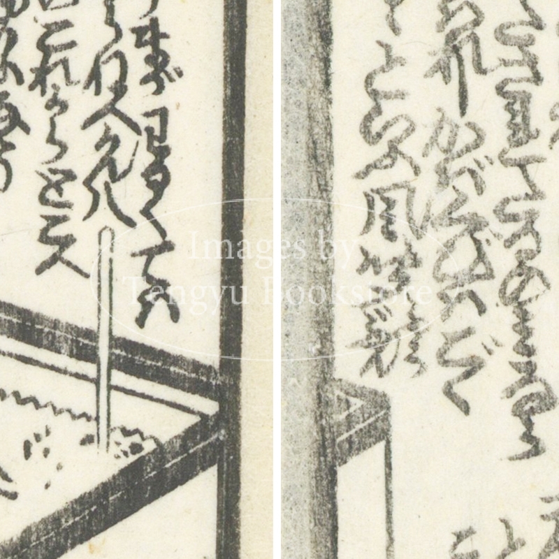 本来は2枚に分けて描かれた作品であるため、色味や図案の整合に若干の不統一があることをご了承ください。