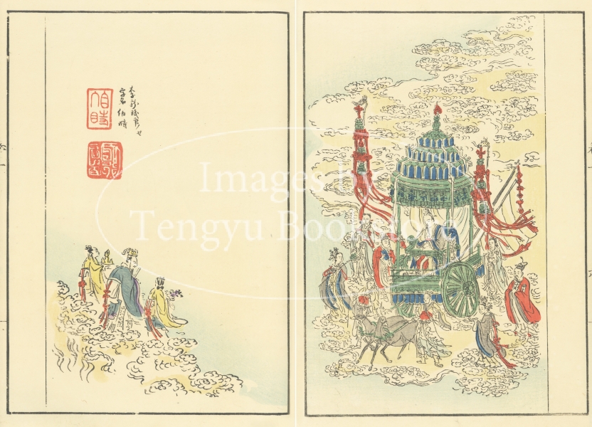 本来は2枚に分けて描かれた作品であるため、色味や図案の整合に若干の不統一があることをご了承ください。