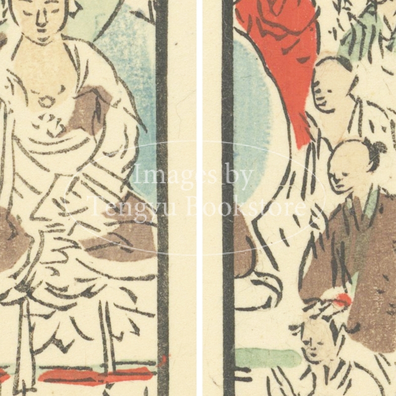 本来は2枚に分けて描かれた作品であるため、色味や図案の整合に若干の不統一があることをご了承ください。