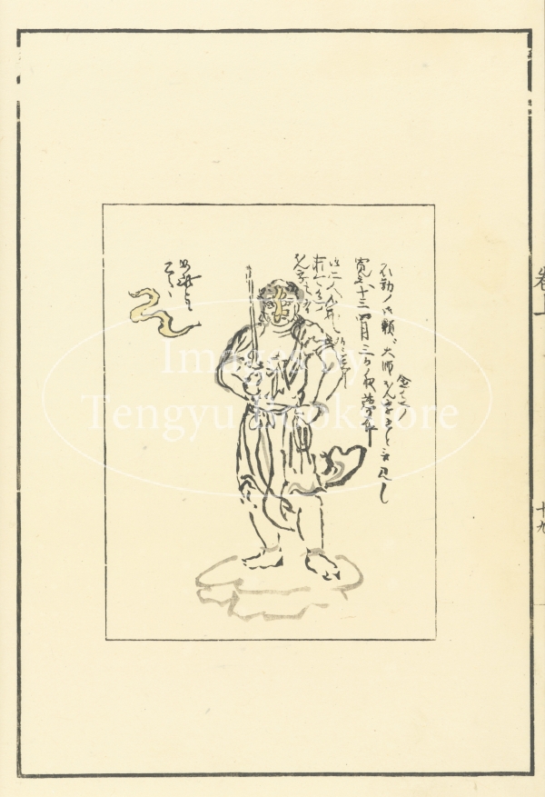 日本画史上最大の画派 狩野派を代表する江戸初期の絵師 狩野探幽(1602-1674)が自身の研鑽のために描いていた古画の模写図(縮図)を木版画に起こした、明治期刊行の探幽縮図集中の一図。