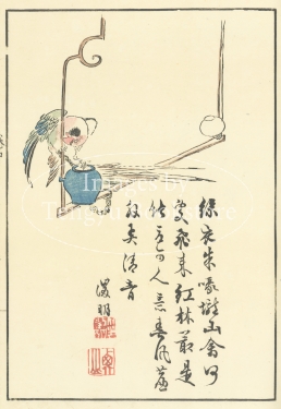 日本画史上最大の画派 狩野派を代表する江戸初期の絵師 狩野探幽(1602-1674)が自身の研鑽のために描いていた古画の模写図(縮図)を木版画に起こした、明治期刊行の探幽縮図集中の一図。