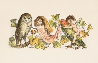 「シャーロック・ホームズ」の作者コナン・ドイルの伯父としても知られる19世紀イギリスの画家リチャード・ドイルのイラストを使用した絵本「誰でもない王女さま」の挿絵。本書は、妖精の絵を得意としたリチャード・ドイルの代表作「妖精の国で」から着想得た作家アンドリュー・ラングが書き下ろした物語に、「妖精の国で」中の図版を添えたもの。