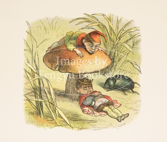 「シャーロック・ホームズ」の作者コナン・ドイルの伯父としても知られる19世紀イギリスの画家リチャード・ドイルのイラストを使用した絵本「誰でもない王女さま」の挿絵。本書は、妖精の絵を得意としたリチャード・ドイルの代表作「妖精の国で」から着想得た作家アンドリュー・ラングが書き下ろした物語に、「妖精の国で」中の図版を添えたもの。