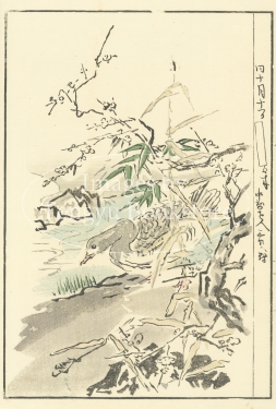 日本画史上最大の画派 狩野派を代表する江戸初期の絵師 狩野探幽(1602-1674)が自身の研鑽のために描いていた古画の模写図(縮図)を木版画に起こした、明治期刊行の探幽縮図集中の一図。