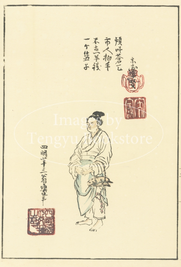 日本画史上最大の画派 狩野派を代表する江戸初期の絵師 狩野探幽(1602-1674)が自身の研鑽のために描いていた古画の模写図(縮図)を木版画に起こした、明治期刊行の探幽縮図集中の一図。