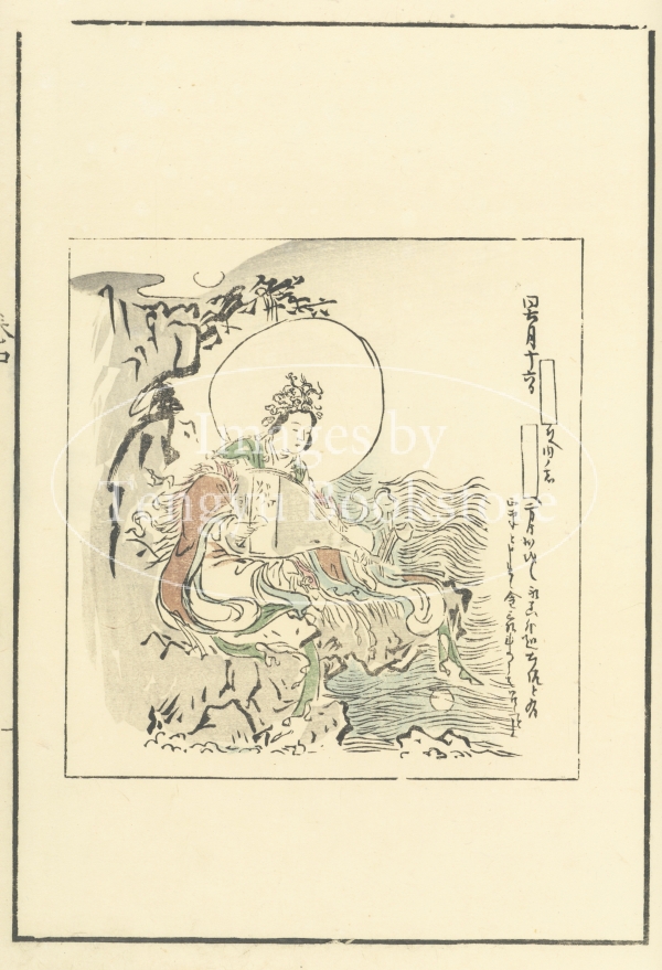 日本画史上最大の画派 狩野派を代表する江戸初期の絵師 狩野探幽(1602-1674)が自身の研鑽のために描いていた古画の模写図(縮図)を木版画に起こした、明治期刊行の探幽縮図集中の一図。