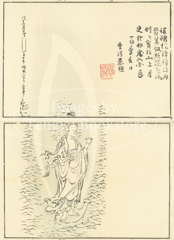 本来は2枚に分けて描かれた作品であるため、色味や図案の整合に若干の不統一があることをご了承ください。