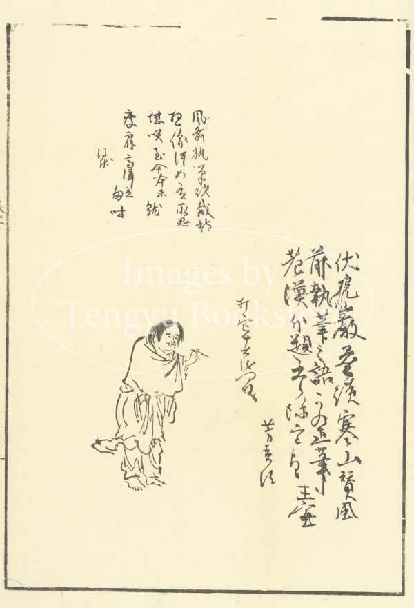 日本画史上最大の画派 狩野派を代表する江戸初期の絵師 狩野探幽(1602-1674)が自身の研鑽のために描いていた古画の模写図(縮図)を木版画に起こした、明治期刊行の探幽縮図集中の一図。