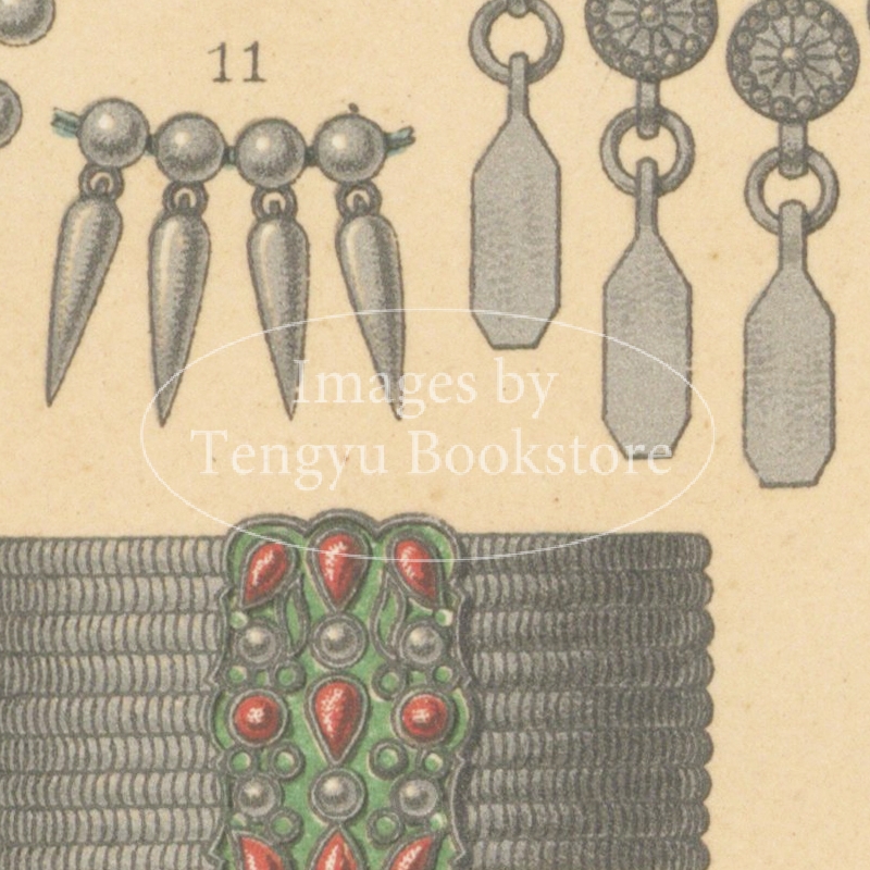 多色刷石版によってカラー印刷された、世界の歴史的衣装や民族衣装の図は、資料的な価値はもちろん、美術的にも評価の高い貴重なイラストです。