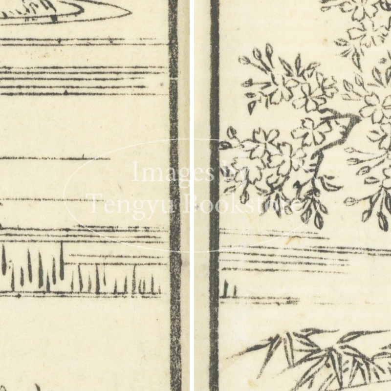 本来は2枚に分けて描かれた作品であるため、色味や図案の整合に若干の不統一があることをご了承ください。