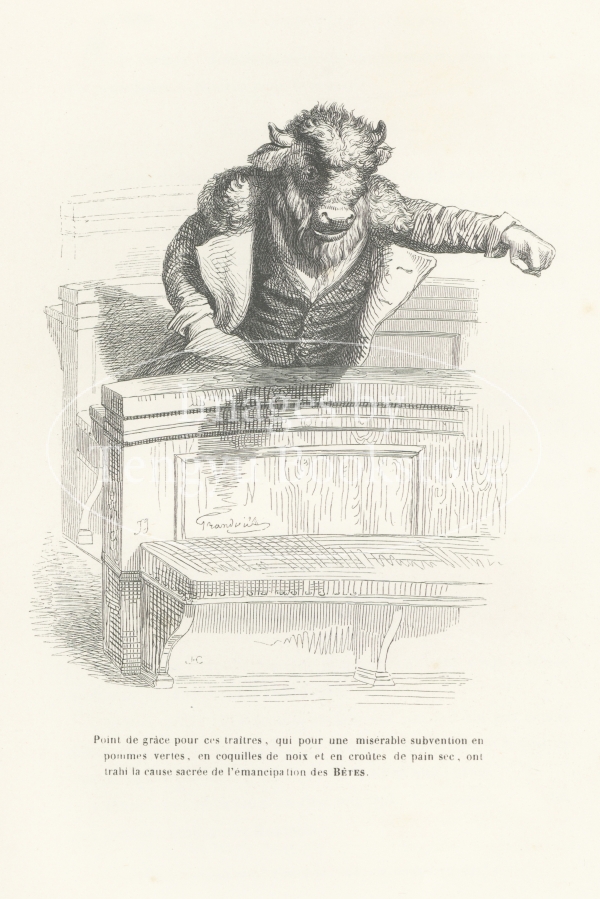 19世紀フランスの挿絵画家J.J.グランヴィル(1803-1847)の代表作「動物たちの私生活及び公生活の情景」の挿絵。