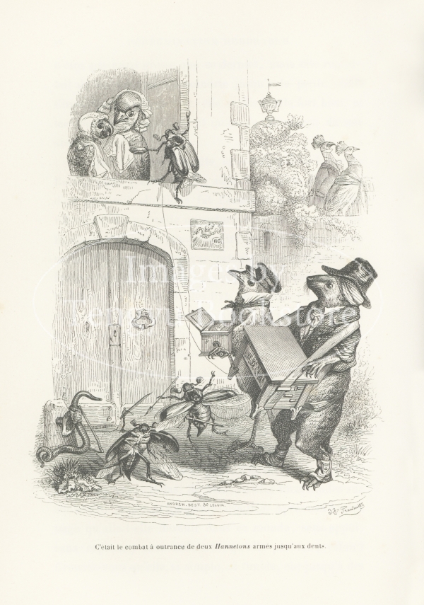 19世紀フランスの挿絵画家J.J.グランヴィル(1803-1847)の代表作「動物たちの私生活及び公生活の情景」の挿絵。